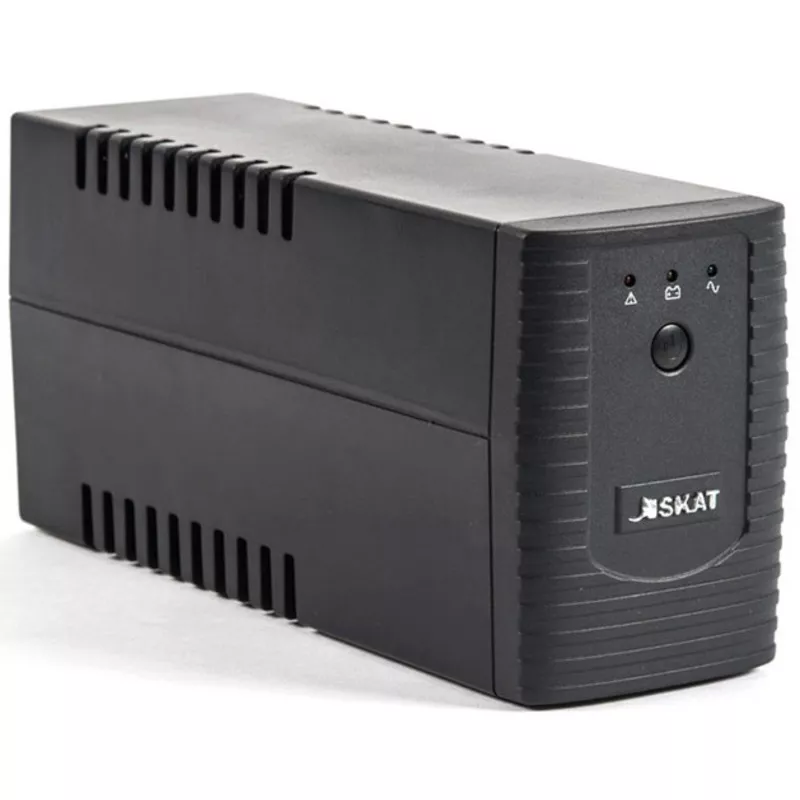 SKAT-UPS 600/350 (ИБП 600) — надежный российский источник бесперебойного питания 220 В, 600 ВА (350 Вт), имеет наиболее востребованные мощностные характеристики и идеально подходит для офисных целей. Встроенный АКБ 7 Ач, встроенная стабилизация, заряд и защита АКБ, защита нагрузки. Стандартная и компьютерная розетки.