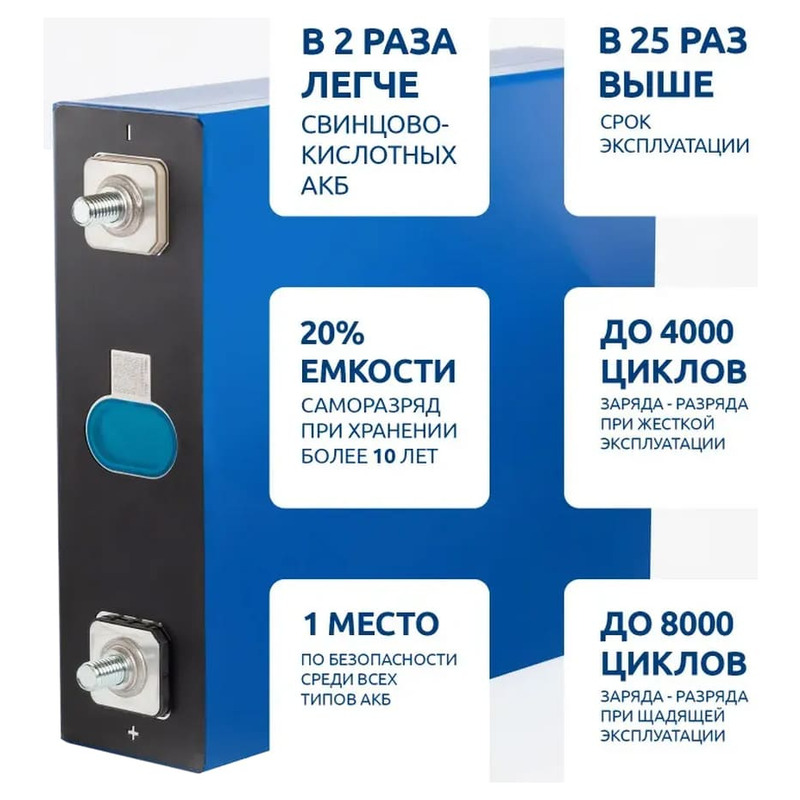 LFP (LiFePO4) - это новый вариант литиевых аккумуляторов, имеющих уникальный химический состав. В отличие от традиционных литий-ионных батарей, этот вид не содержит никеля и кобальта.