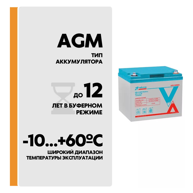 - Аккумулятор Vektor Energy GPL 12-40 - 1 шт.