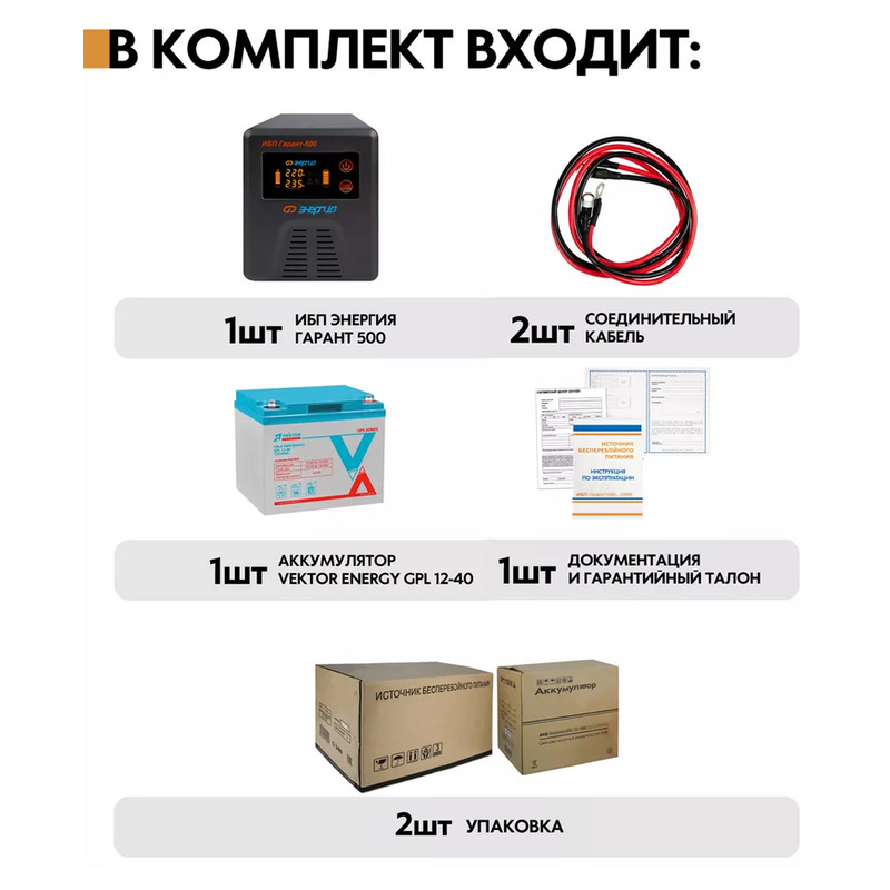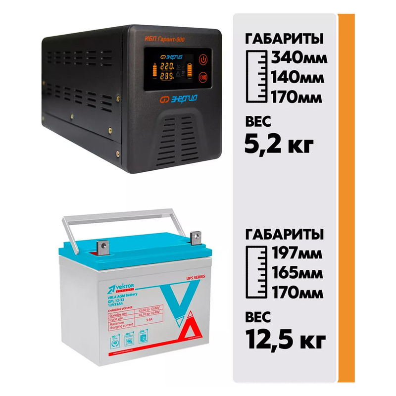 Комплект ИБП Энергия Гарант 500 + Аккумулятор Vektor Energy GPL 12-40