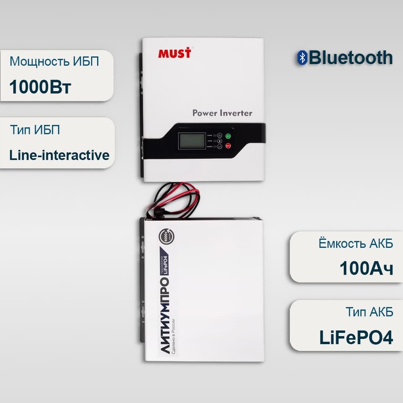 Комплект ИБП Must EP21-1012 PRO + АКБ ЛИТИУМПРО LFP 12-100TW-100