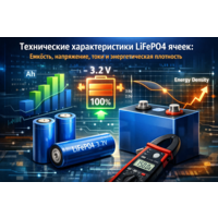 LiFePO4-элементы ценят за безопасность и ресурс, но именно точные характеристики определяют, сколько энергии получится получить в реальной нагрузке и насколько корректно соберётся аккумуляторный блок. Емкость, токи, напряжения и температурные ограничения напрямую влияют на стабильность работы, нагрев и срок службы. Ниже — практичное описание ключевых параметров по одному шаблону, чтобы проще сравнивать элементы и проектировать сборки.